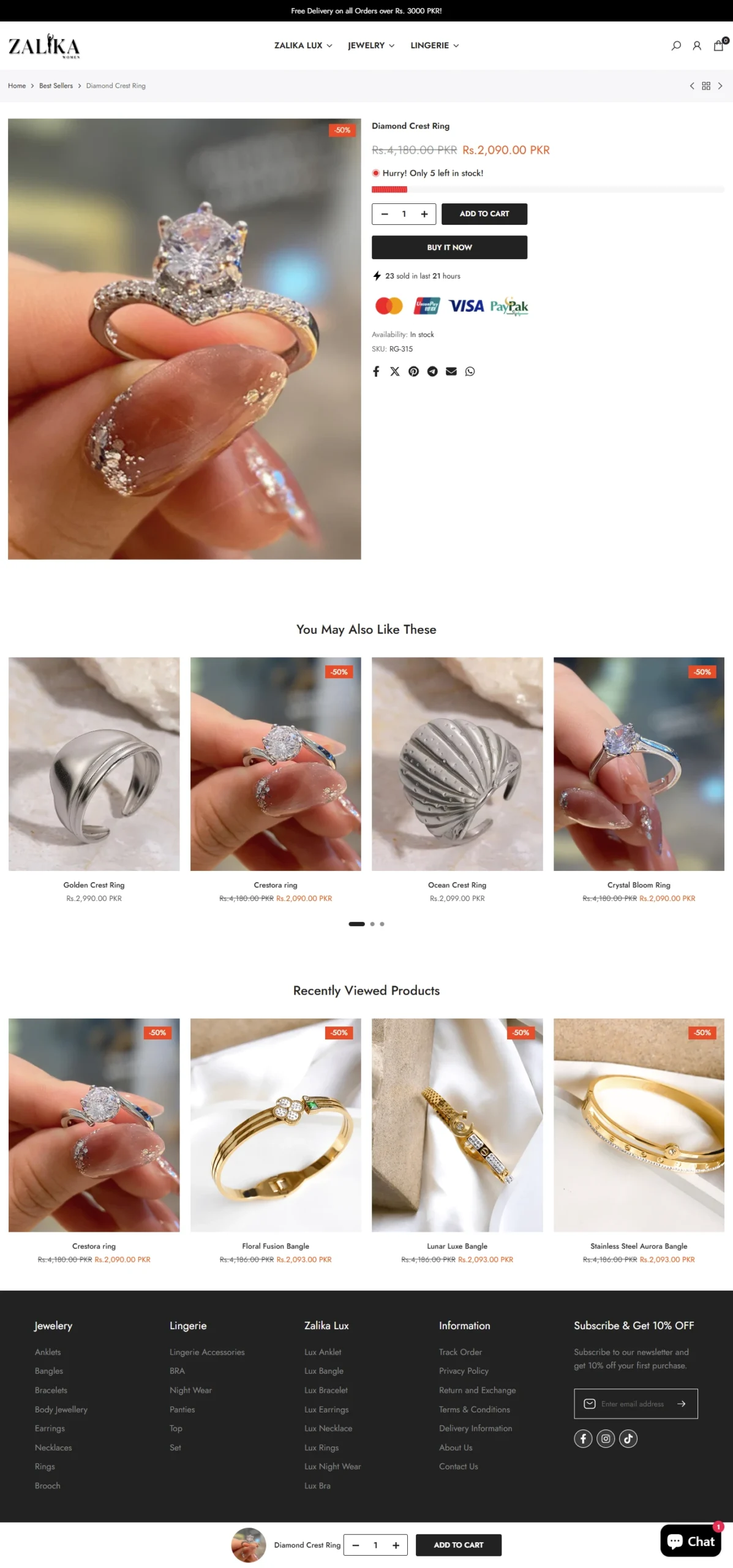 Zalika Women is a jewellery ecommerce brand that was migrated from WooCommerce to Shopify.
